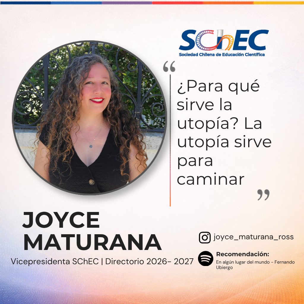 Joyce Maturana Ross es Socia Titular de la Sociedad Chilena de Educación Científica (SChEC), académica de la Pontificia Universidad Católica de Valparaíso y jefa de carrera de Pedagogía en Biología y Ciencias Naturales.